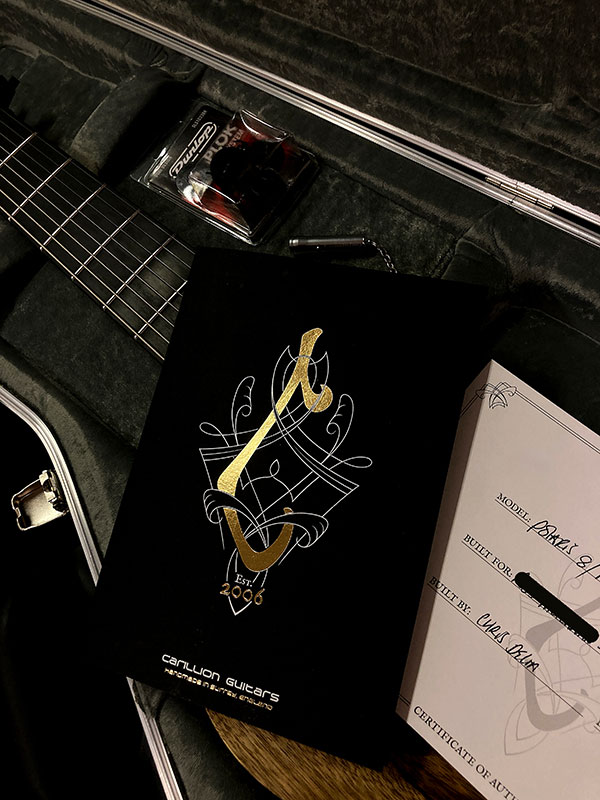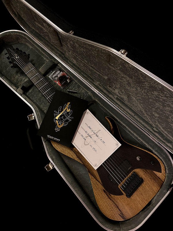 Carillion Guitars represents the exceptional craftsmanship of luthier Chris Delia, based in Surrey, England. This particular instrument is a custom order, distinct from the Kessel Run builds, and features the rare 8-string configuration that sets it apart within the esteemed Carillion collection. This unique guitar is a must-have for any serious musician or collector, as it comes complete with a Certificate of Authenticity, a detailed spec build sheet, and maintenance guidelines from the builder. Don’t let the opportunity to own this extraordinary piece pass you by.