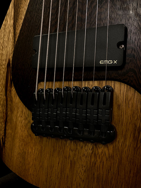 Neck: Set in 5 Piece Roasted Flamed Maple, Wenge Stringers lined with Maple with Dual Action, 2 Way Truss Rod
