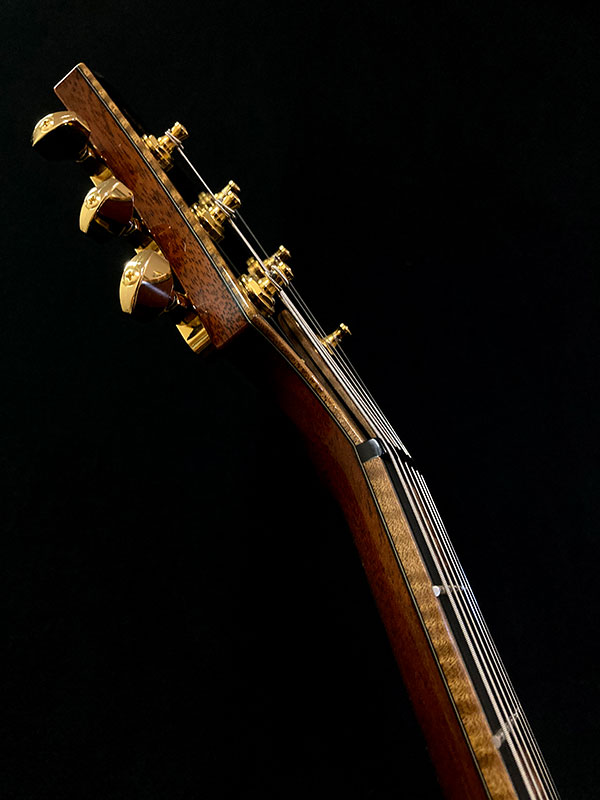 Neck: African Mahogany, Quarter Sawn 2 Piece with Dual Action Truss Rod, Carbon Fiber Reinforced, with 4ply Multi-lined Purfling and Roasted Maple Binding