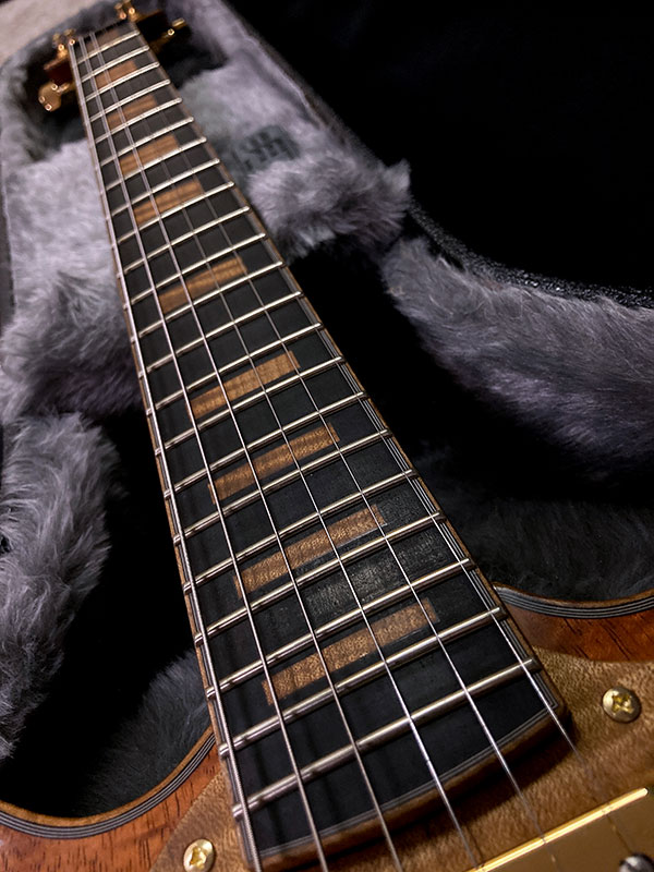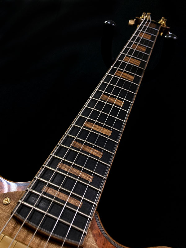 Fretboard: Gabon Ebony with Roasted Flame Maple Blocks
