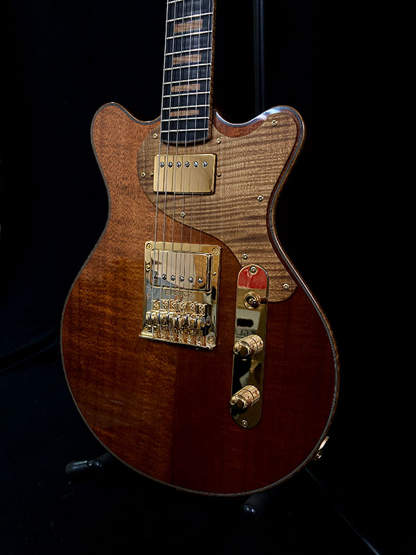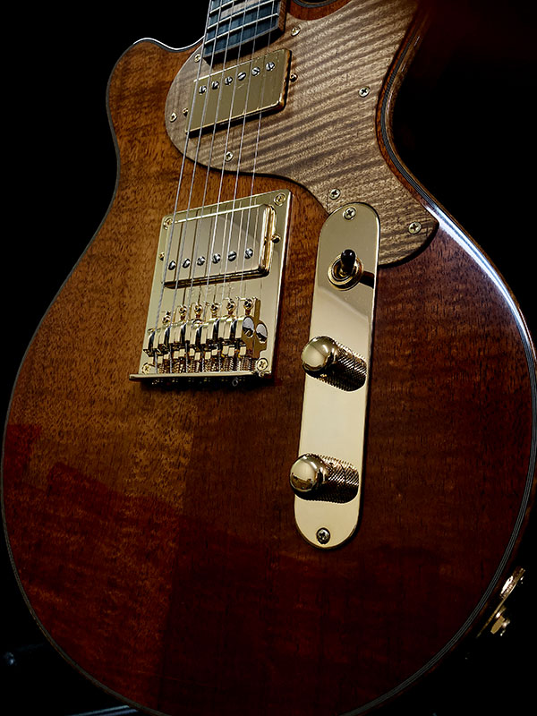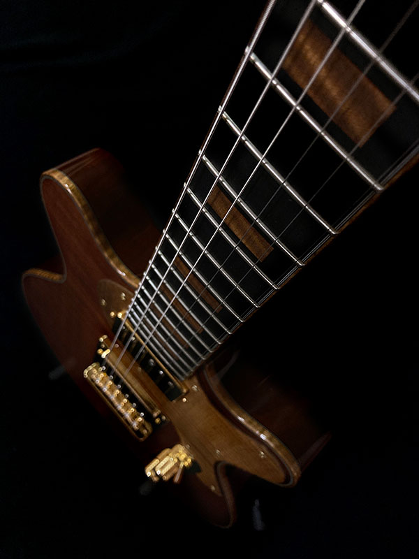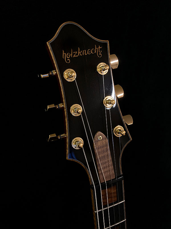 Headstock Overlay: Gabon Ebony with Roasted Maple Logo