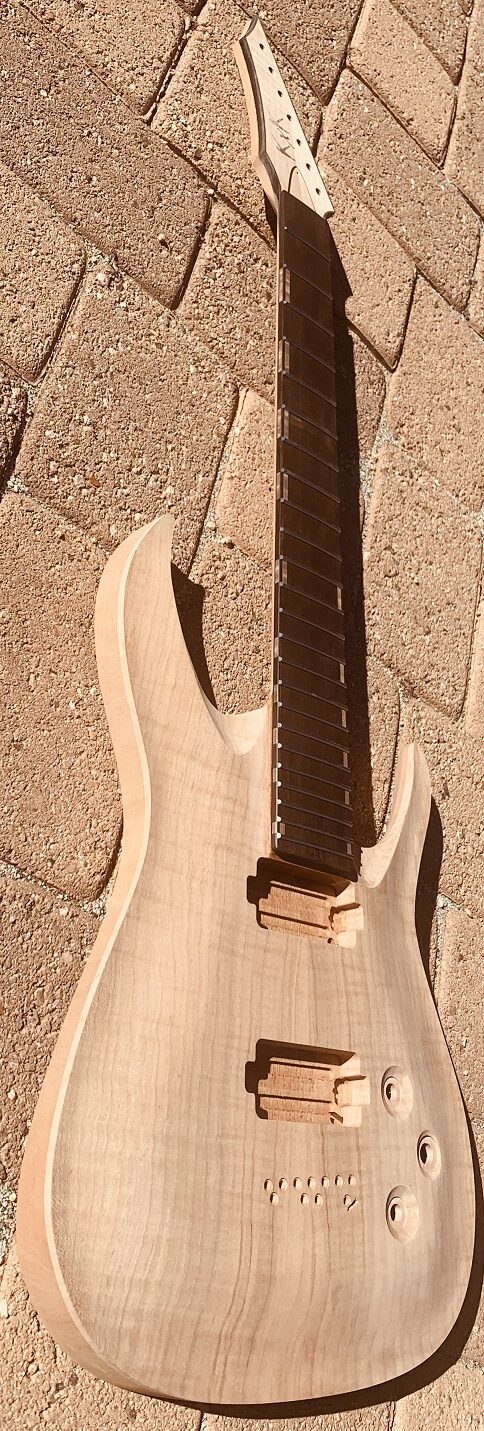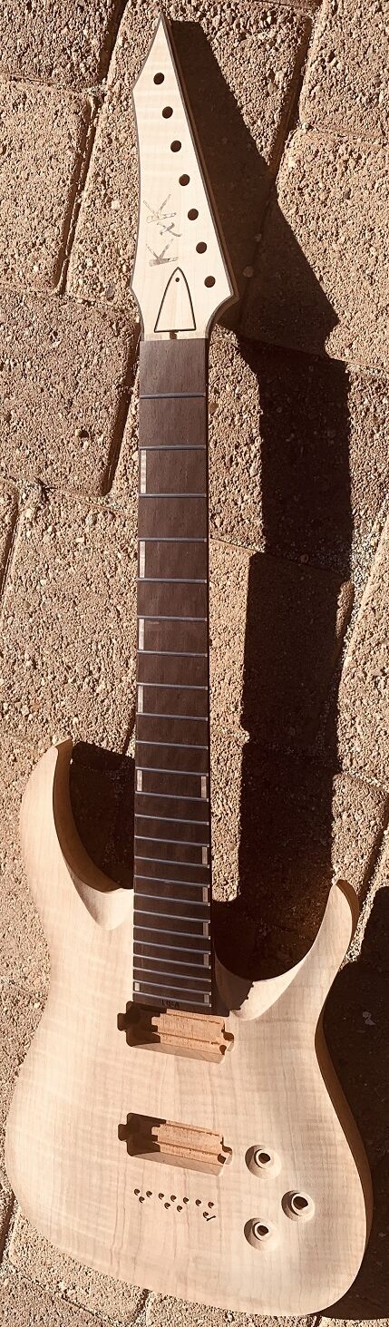 KxK is a one man shop in CA building some of the best metal and shredder guitars on the planet. Endorsers Karl Sanders from Nile, currently working on a redesign of his signature V, and KK Downing play KxK for their personal guitars. That should say volumes within itself. This KxK Sii7 is a one-of-a-kind instrument built to precision.