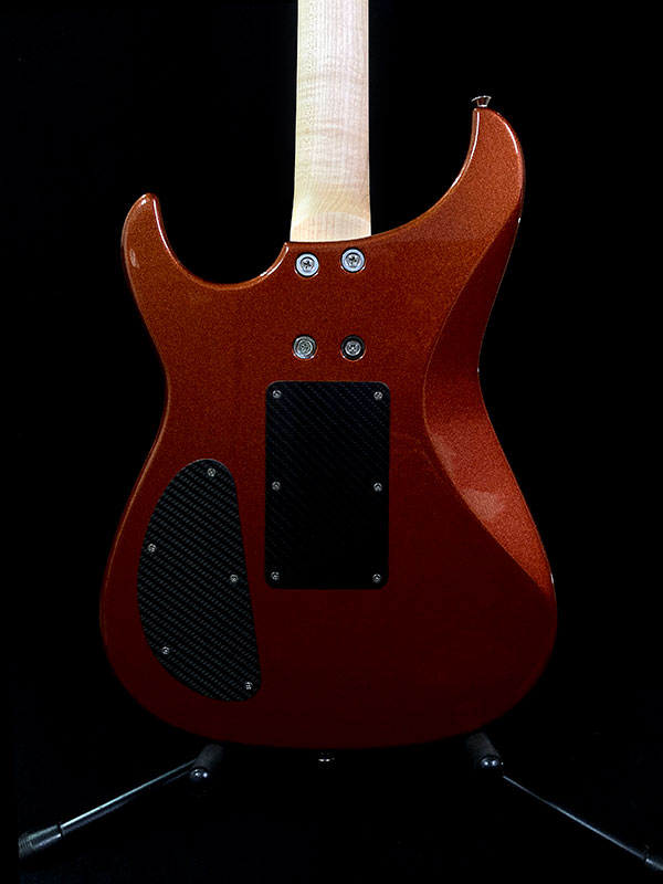 What makes Mace Guitarwerks stand out from the competition is the revolutionary neck mounting system. Mace’s deep set-neck mounting system has over half a ton of total clamping pressure. This mechanical coupling and acoustical energy transfer results in improved clarity, resonance, sustain and stability. The bridge pickup position is slightly further away from the bridge to eliminate the harshness caused by stacking the pickup against the bridge also. We compare this model to a USA San Dimas or USA Wolfgang models.